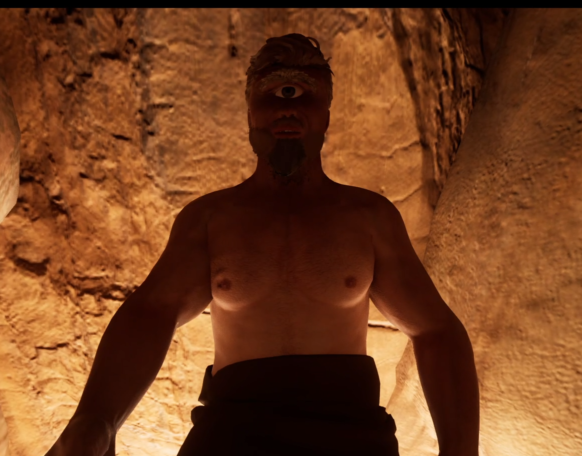 Wie eine Art begehbares Bilderbuch wird mithilfe von VR erzählt wie Odysseus auf den Zyklopen